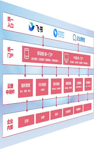 对协作平台提供支持服务,,,支持企业应用与协作平台对接,,,包含组织同步、、、、消息集成、、待办集成等。。。。支持目前主流的协作平台:钉钉、、、企微和飞书。。